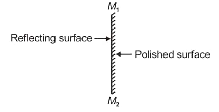 Plane mirror: A plane glass sheet having a thin layer of silver metal deposited on one side which is protected by a coat of red paint. The light is reflected from silvered surface of the plane mirror. A plane mirror and its schematic representation are shown in the following figure.